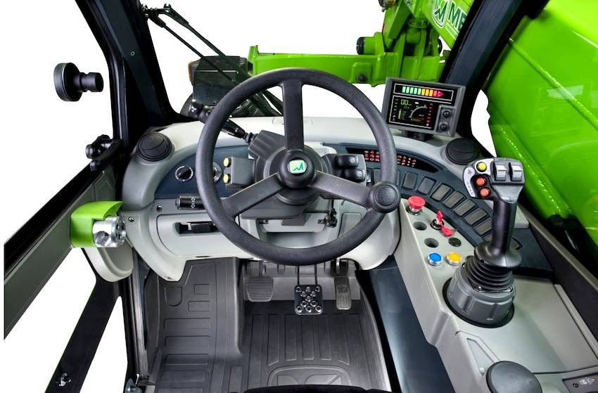 CABINE – Pour garantir un accès simple et facile à la cabine, la portière des chargeurs télescopiques Merlo peut être ouverte jusqu’à 180°. Par ailleurs, l’intérieur de la portière est équipé d’une grande main courante pour aider l’opérateur à entrer et sortir de la cabine.